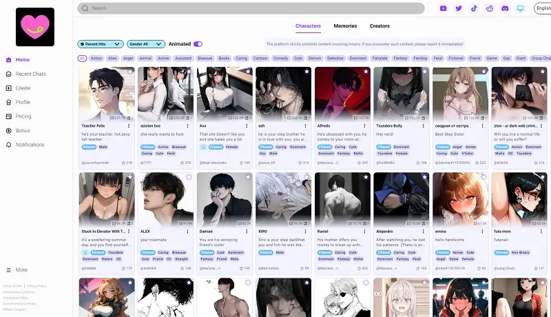 CrushOn.AI е усъвършенствана платформа за герои с изкуствен интелект, която дава възможност на потребителите да взаимодействат със спътници с изкуствен интелект в напълно нецензурирана, персонализирана среда. За разлика от традиционните чатботове, CrushOn.AI ви предлага възможността да създадете перфектния си партньор с изкуствен интелект и да се потопите в разговори без филтри и ограничения.
