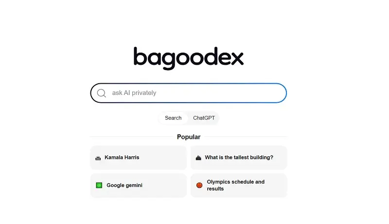 Chat AI GPT-4.0 integrado: Bagoodex integra el último Chat GPT-4.0, que permite a los usuarios participar en conversaciones interactivas e inteligentes directamente dentro del motor de búsqueda. Esta función permite respuestas más dinámicas y personalizadas, mejorando la experiencia de búsqueda en general.