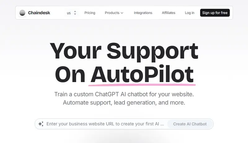 Chaindesk destaca como herramienta de vanguardia para empresas que buscan un ecosistema de soporte potenciado por inteligencia artificial. Si necesita automatizar la atención al cliente, agilizar la generación de clientes potenciales o mejorar la comunicación empresarial en general, Chaindesk ofrece una solución sencilla, sin codificación, que le permite entrenar y desplegar un chatbot personalizado utilizando sus propios datos.