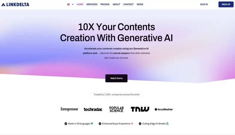 Το Linkdelta είναι μια πρωτοποριακή λύση που βασίζεται στην τεχνητή νοημοσύνη και έχει σχεδιαστεί για να ανακουφίσει αυτό το βάρος και να βελτιώσει τη ροή εργασίας σας. Αυτό το έξυπνο εργαλείο είναι μια ευέλικτη και φιλική προς το χρήστη πλατφόρμα τεχνητής νοημοσύνης που έχει σχεδιαστεί σχολαστικά για να επιταχύνει και να βελτιστοποιήσει τις προσπάθειες δημιουργίας περιεχομένου, είτε είστε επιχειρηματίας, έμπορος ή δημιουργός περιεχομένου.