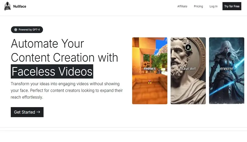Το Nullface.ai είναι μια καινοτόμος πλατφόρμα που βασίζεται στην τεχνητή νοημοσύνη και αυτοματοποιεί τη δημιουργία απρόσωπων βίντεο για τα μέσα κοινωνικής δικτύωσης, ιδίως το TikTok. Επιτρέπει στους χρήστες να δημιουργούν ελκυστικά βίντεο χωρίς να δείχνουν το πρόσωπό τους, καθιστώντας το ιδανικό για όσους προτιμούν να διατηρούν την ανωνυμία τους κατά την παραγωγή περιεχομένου.