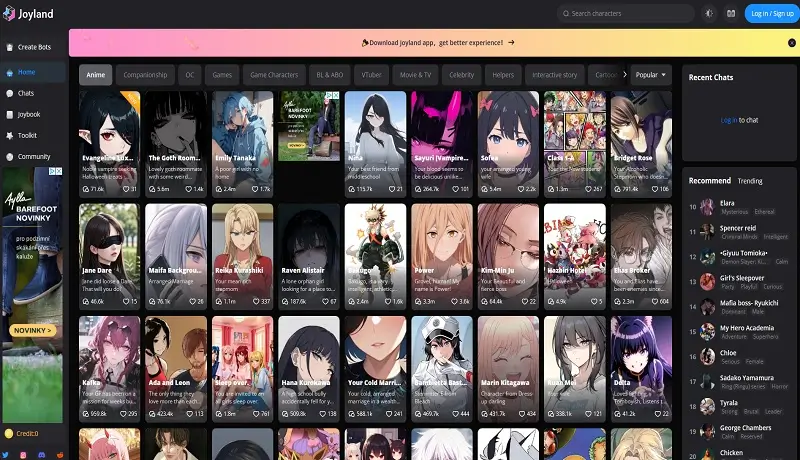 Joyland.ai: Anime karakterek mesterséges intelligenciával