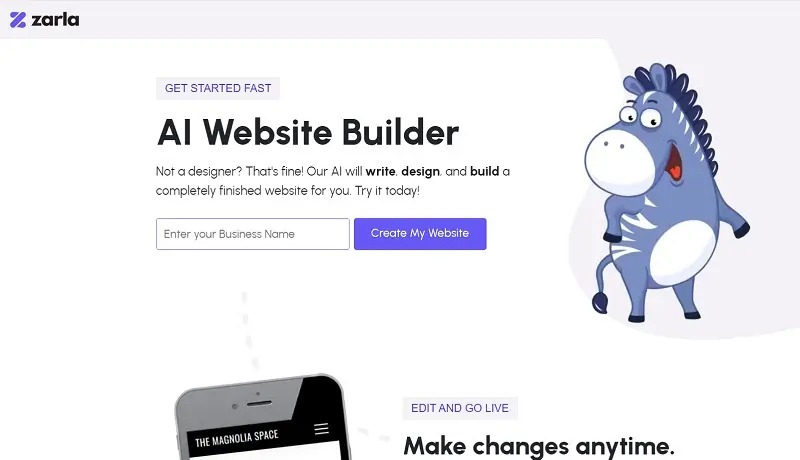Zarla: Pembangun situs web menggunakan kecerdasan buatan