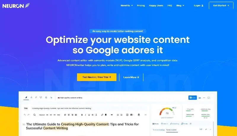 Sukuria aukštos kokybės turinį: Nuo tinklaraščio įrašų ir straipsnių iki socialinių tinklų antraščių ir rinkodaros tekstų – NeuronWriter padeda lengvai kurti įtikinamą turinį.