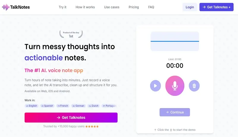 TalkNotes — это приложение для создания голосовых заметок с искусственным интеллектом, предназначенное для быстрого превращения беспорядочных мыслей в действенные заметки. Оно работает более чем на 50 языках и может использоваться как на веб-платформах, так и на мобильных устройствах. Мы расскажем вам основные факты, которые необходимо знать о TalkNotes, чтобы вы могли решить, подходит ли вам это приложение.